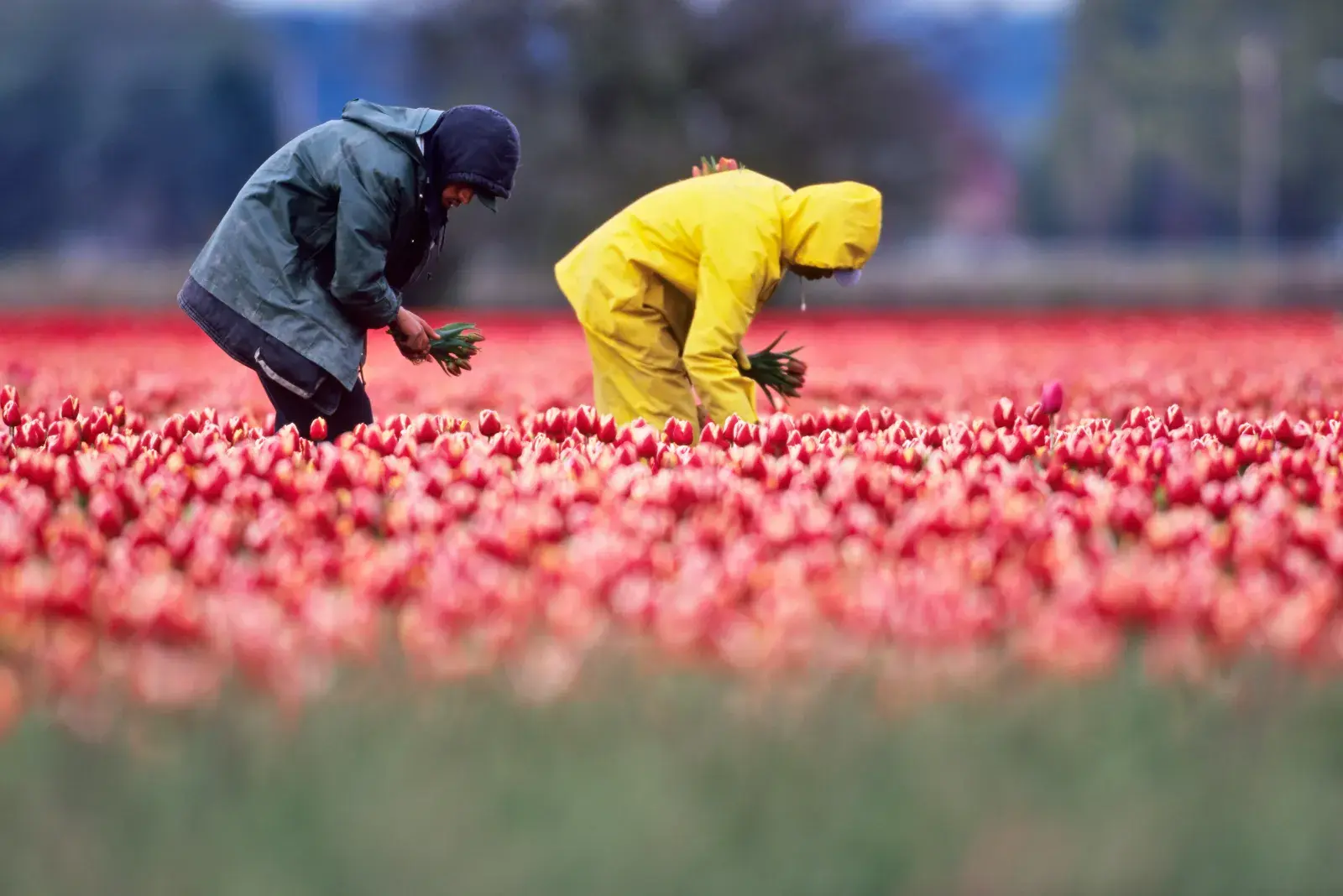 Bức ảnh ghi lại khung cảnh những người lao động gốc Latinh làm việc ngoài đồng, hái hoa tulip tại một trang trại ở thung lũng Skagit, bang Washington.
